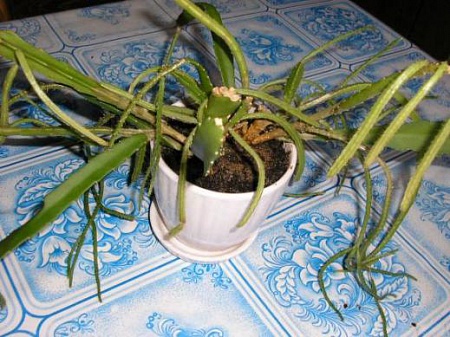 только вот название его не ясно...я полагаю, что можно остановиться на эпифиллуме...он может быть такого вида, т.к. его забрали у охраны, а сами понимаете какие их охранников цветоводы. Что точно знаю, ему там света было маловато...