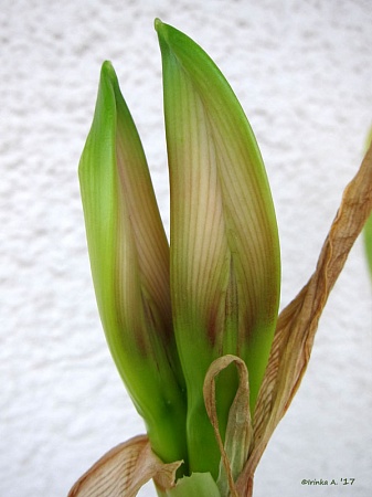 Дабы, хоть как-то скрасить разочарование(я реально полагала, что цветения теперь не видать мне до весны 18года), и в первой половине апреля пересадила луку в свежий субстрат, за одно увеличив размер плошки.....