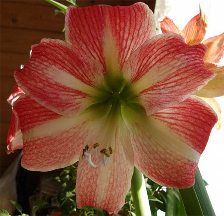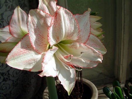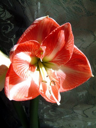 ). Леди действительно побледнела, но только не в первых распустившихся цветках, а в последующих... У них пошел действительно оранжево-розовый цвет, какой я видела на других фото и который больше смахивает именно на крабовые палки, а такой яркости и в помине не было. Так и осталась только на первых двух цветочках. Эх, а я-то уже губу раскатала