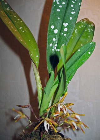 Кстати, у меня есть еще один фаленопсис моей мечты, созданный на основе МикроНовы. Phalaenopsis Fantasy Musick (Phalaenopsis Micro Nova (P. maculata x P. parishii) X Phalaenopsis equestris): [IMG][/IMG] Впрочем, у меня тоже с этим гибридом не складывается. Одного уморила, этому в порыве нежности выломала (кажется) точку роста. Ну и цветение, как следствие - парой цветочков на двух, правда, цветоносах. Даже фотографировать нечего.