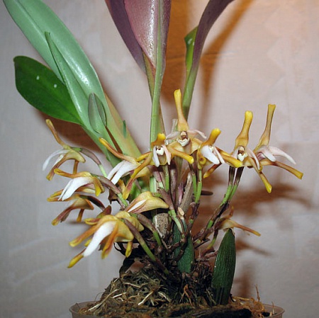 Что Вы! Какие поставщики и резервы! Я его купила аж в 1988 году на рынке в Москве, 6-см кусочек, несколько лет он рос, потом стал цвести. Это и обидно!! Пока был маленький, рос на блоке (как мужик на рынке советовал ), а потом стал разрастаться, и у меня больше не получается его нормально на блок приспособить. Сейчас его зеленой массой морскую свинку накормить можно, а цвести не хочет! Главное, цвел, когда я вообще не задумывалась, что орхам надо для цветения, а сейчас... А Стюрт красииивый... Объясните, плииз, чайнику, в чем изюминка Мини Марка? Я ведь "настоящих" фаликов никогда живьем не видела... Только могазинные гибриды.