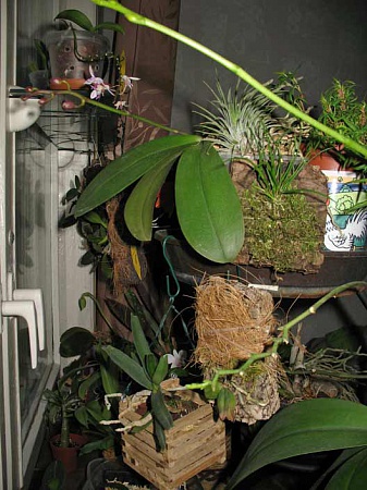 Счастливица: лоджия есть ! А у меня один подоконник в гостинной. Нет ни лоджии, ни балкона На кухню и в спальню мои растюхи не пускают. Там вечно открывваются окна: у нас ужасно жарко. Батареи вечно укутаны в махровые простыни. Открыта только на кухне. У меня на подоконнике вентилятора нет. От стекол идет прохладный воздух и происходит обмен. Увлажнителя тоже нет. Был, пока не привезла из Литвы поддоны с решетками. Наливаю в них воду.Испарение идет весьма активно. На решетки ставлю растения + опрыскиваю каждое утро. Тоже досвечиваю подоконник 2-мя лампами, правда люминисцентные поменяла на энергосберегающие. Все какая-то экономия. Вентилятор только в орхидариуме. Если что-то будете делить, может на что-нибудь поменяемся? Тогда пишите в личку.