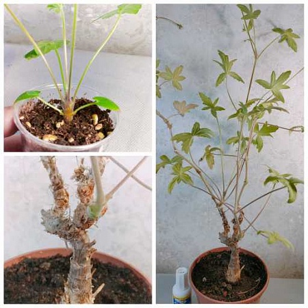 p. quinquelobatum - 50 - маленький сеянец. Потихоньку наращивает каудекс. У листьев пряный запах.